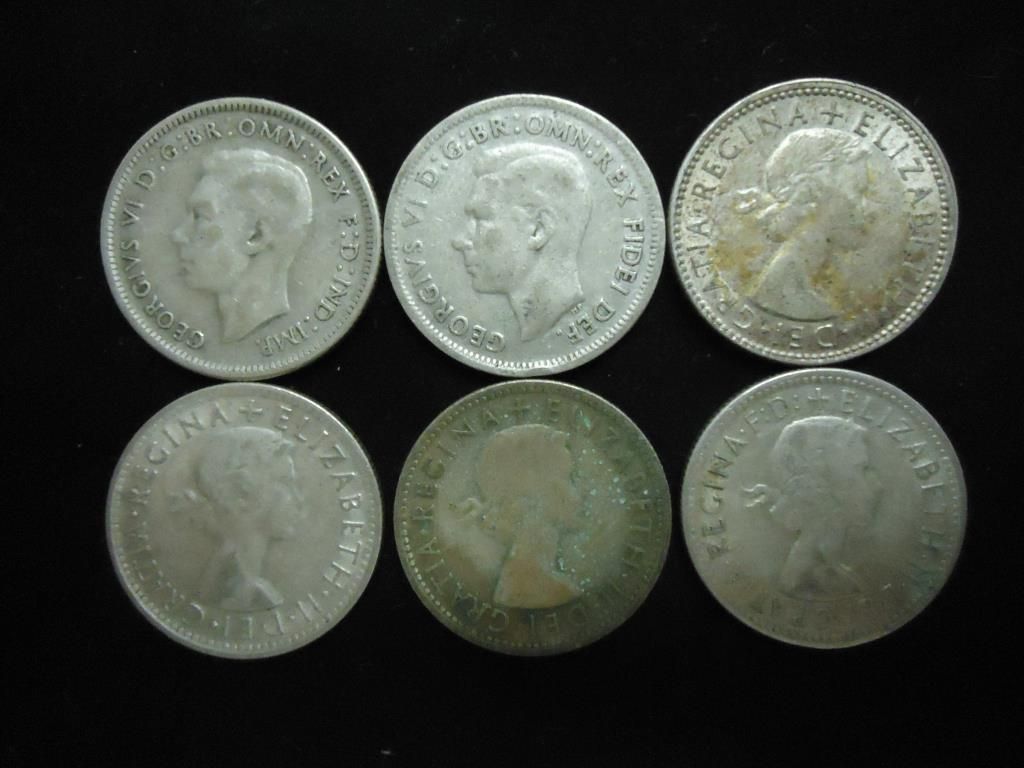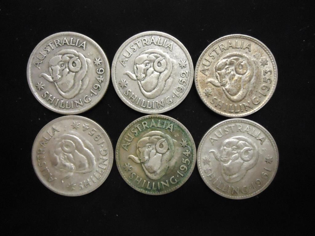 1946,52,53,54,54 & 61 AUSTRALIA SILVER SHILLINGS