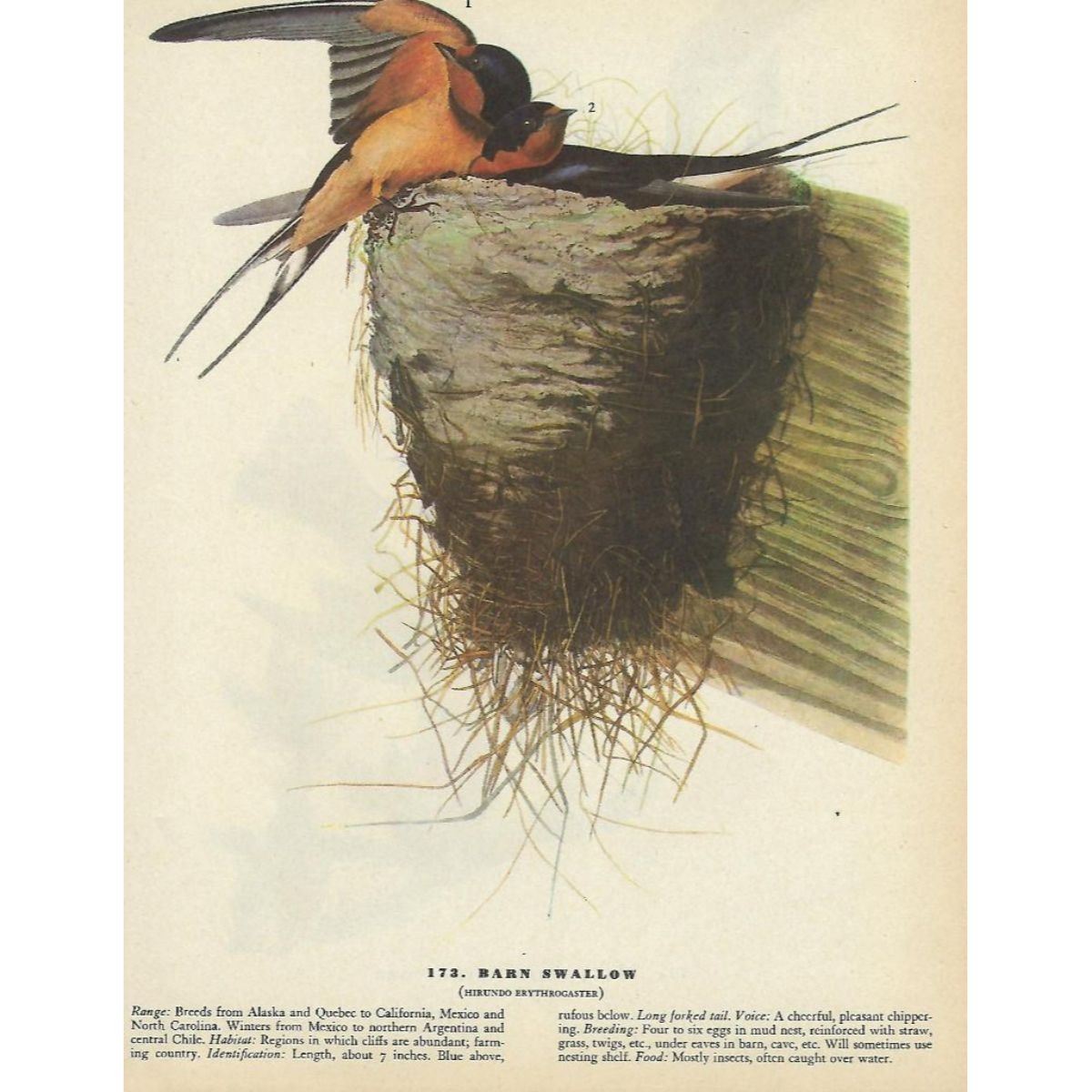John James Audubon, book plate print, # 173 Barn Swallow, taken from a 1946 edition of "The Birds Of America." 8 1/2" X 11". Comes with 11" X 14" mat.