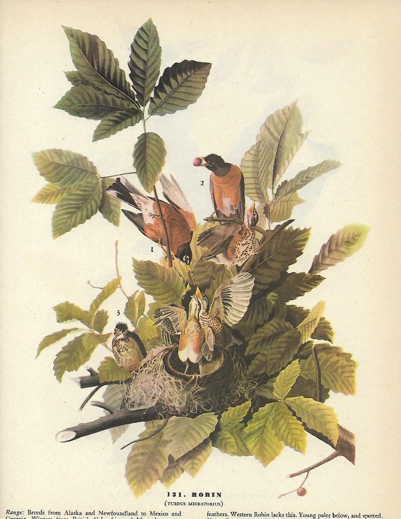 John James Audubon, book plate print, # 131 Robin, taken from a 1946 edition of "The Birds Of America." 8 1/2" X 11". Comes with 11" X 14" mat.