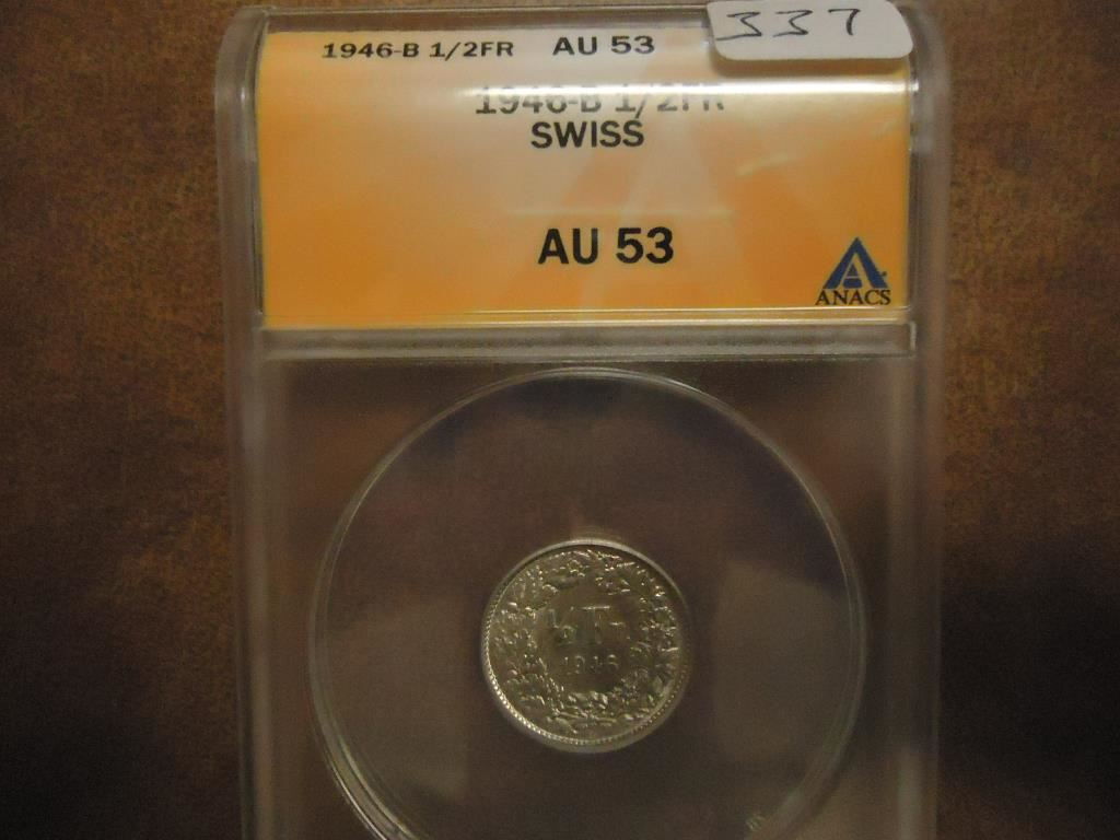 1946-B SWISS SILVER 1/2 FRANC ANACS AU53