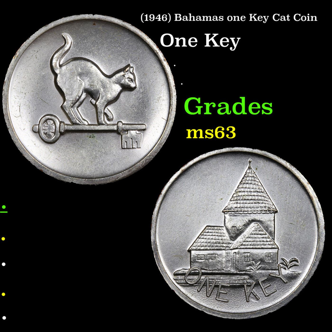 (1946) Bahamas one Key Cat Coin Grades Select Unc.