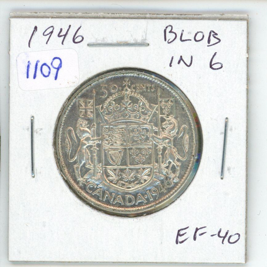 1946 Blob in 6 Canadian Silver 50 Cents. EF-40. Nice.