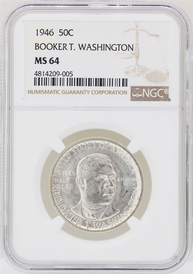 One 1946 Booker T. Washington Memorial Half Dollar Coin NGC MS64. NGC Certified.