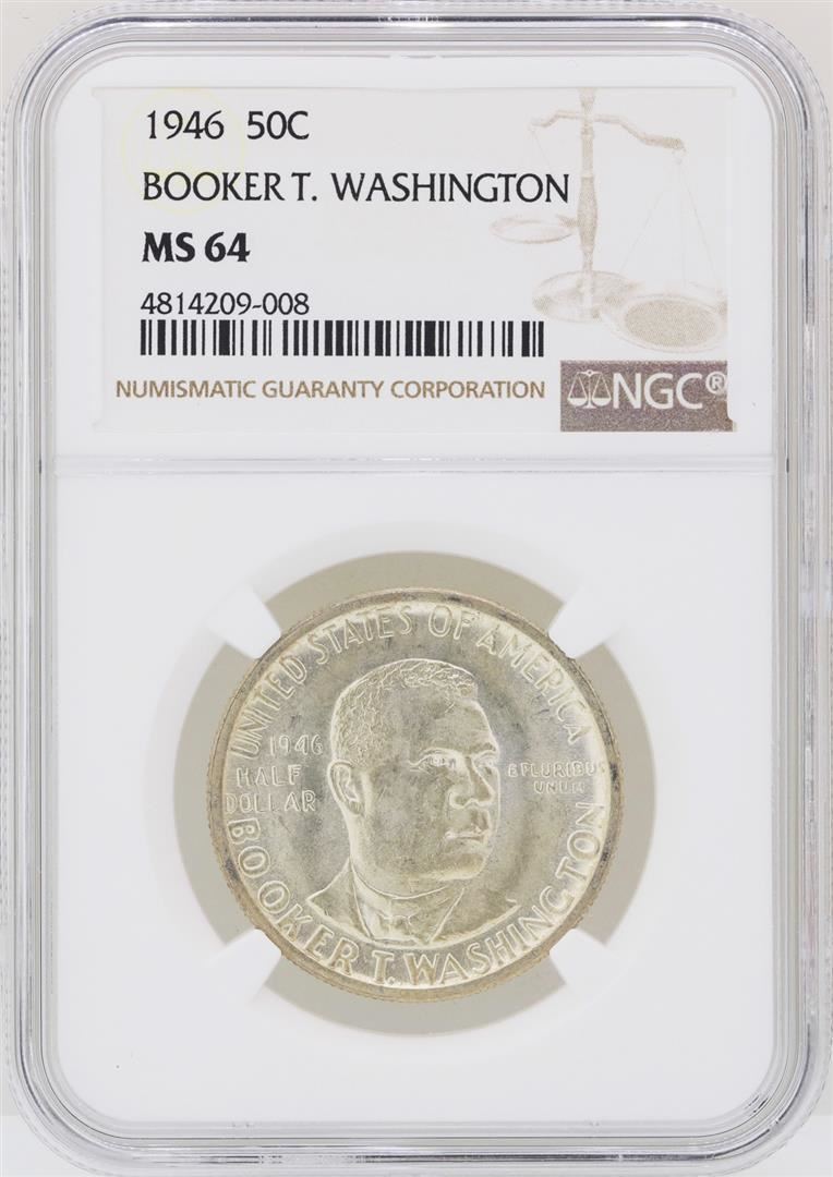 One 1946 Booker T. Washington Memorial Half Dollar Coin NGC MS64. NGC Certified.