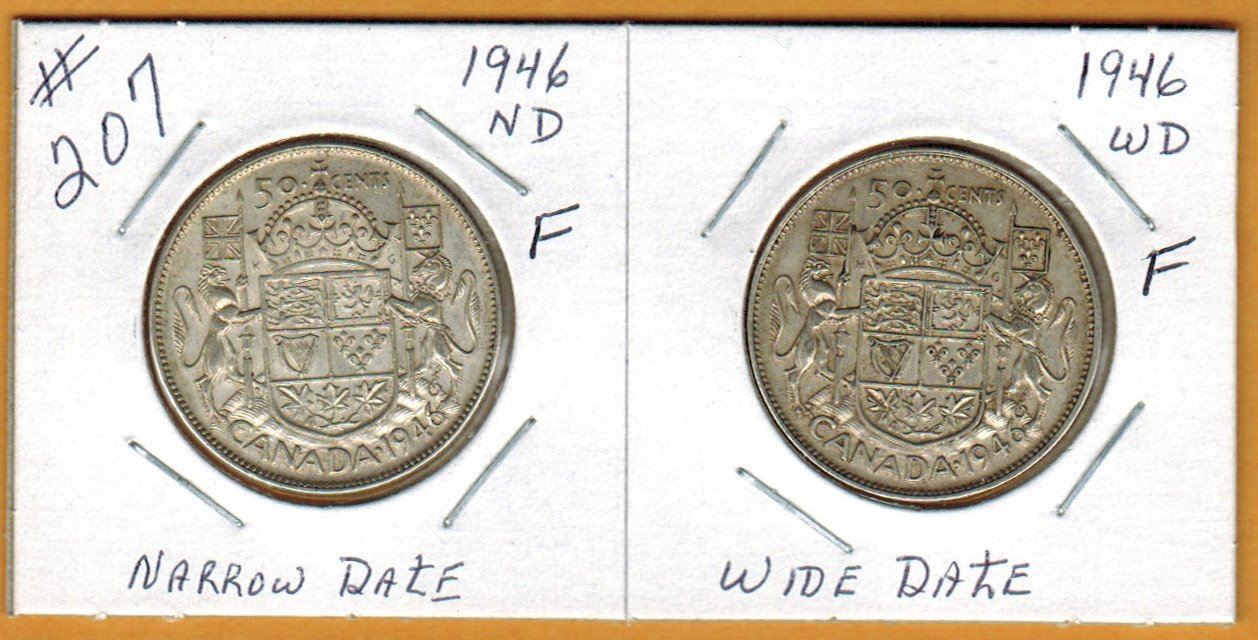 1946 CANADIAN SILVER 50 CENT PIECES (2) - Narrow Date & Wide Date Types