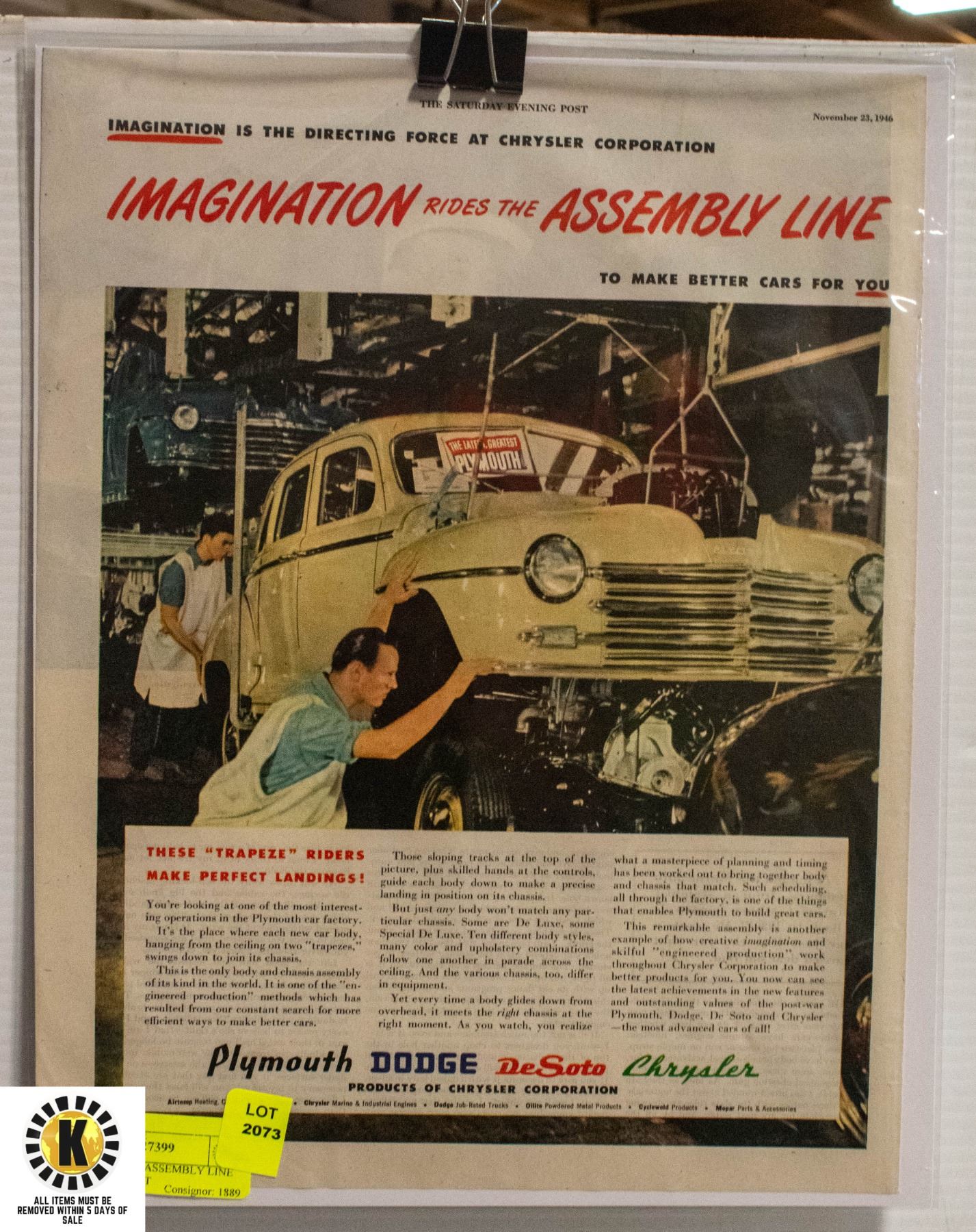 1946 CHRYSLER ASSEMBLY LINE ADVERTISEMENT - ORIGINAL