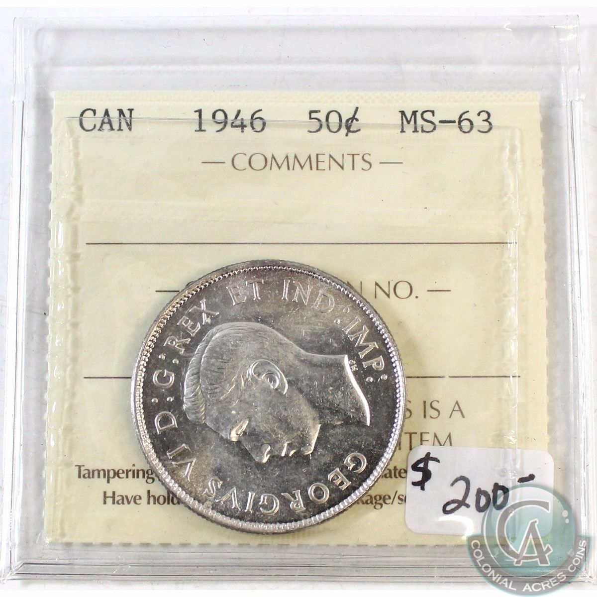 1946 Canada 50-cent ICCS Certified MS-63