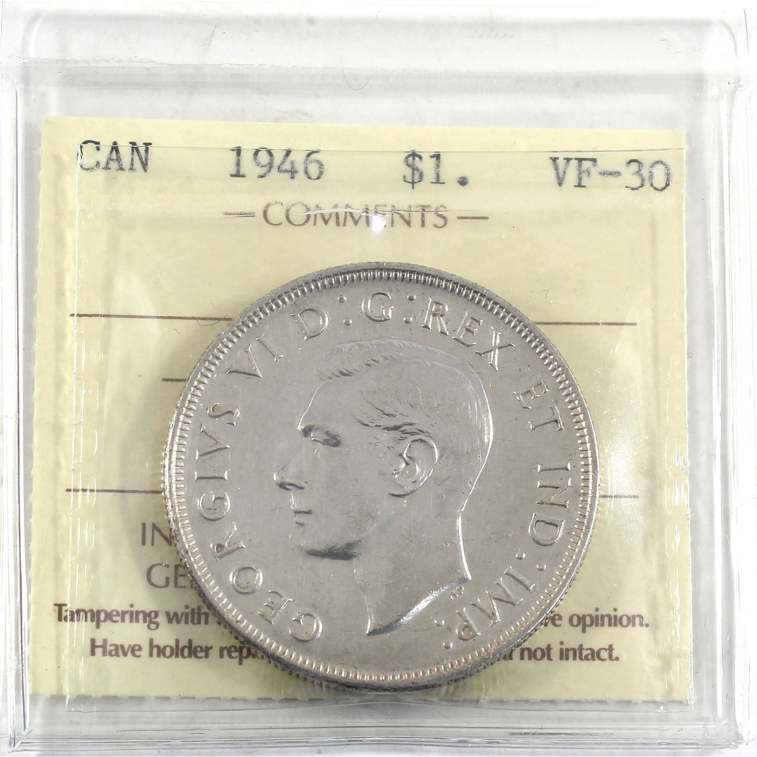 1946 Canada Silver $1 ICCS Certified VF-30.