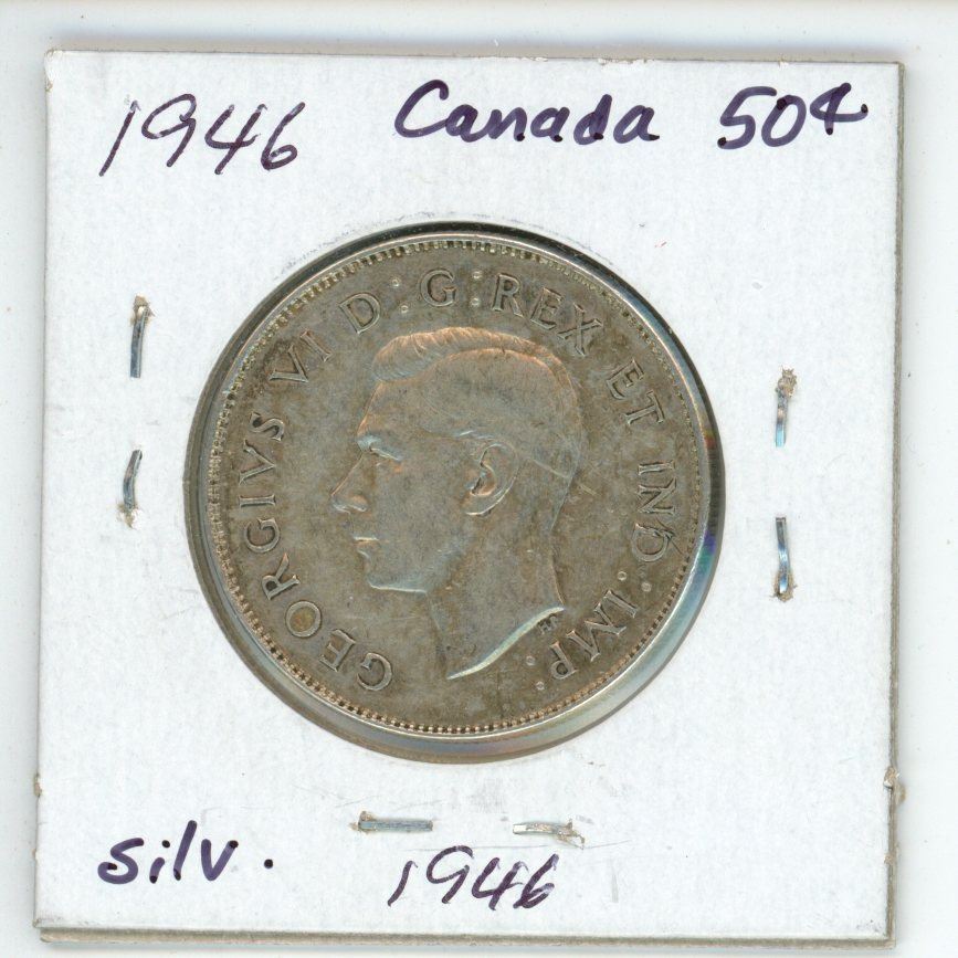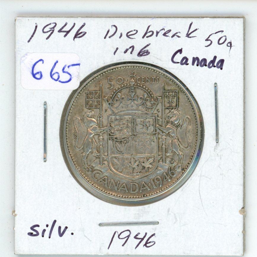 1946 Canada Silver 50¢, diebreak in '6'