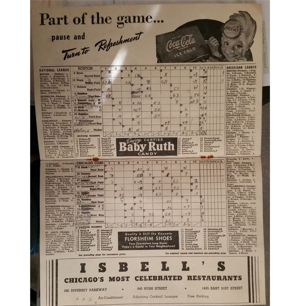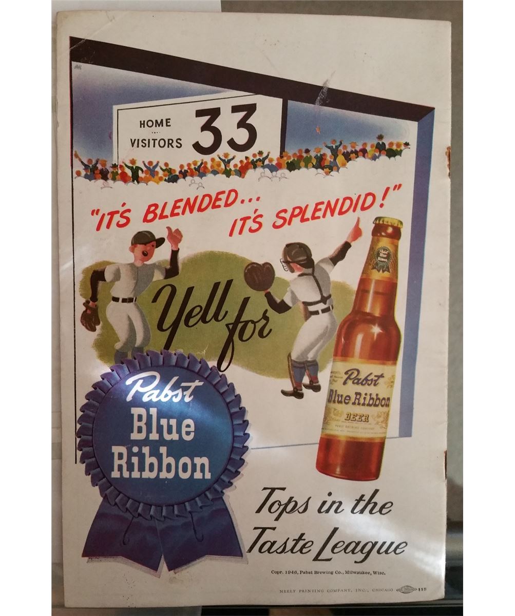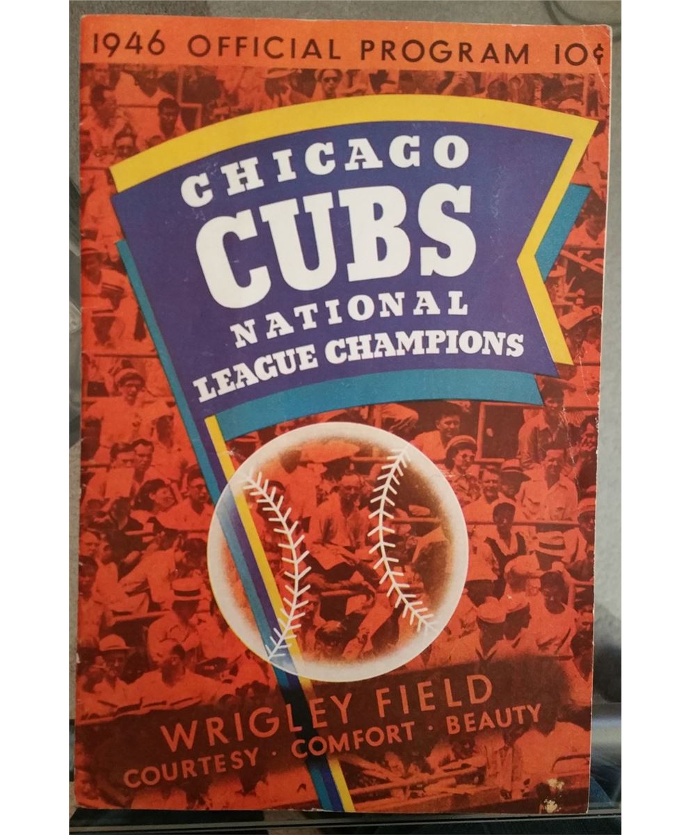 This is an old 1946 scorecard from Wrigley Field Featuring the CUBS against the BOSTON.