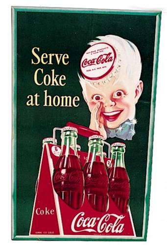 30"x50" great image and color and graphics with Sprite Boy and 6 pack. Nice appearance overall. A little restoration upper right and lower left corners, as well as along 2' long central crease that runs vertically down from the top for 18". Otherwise, only light surface marks, minor wear, light soiling and a mild border stain on the left side and minor edge wear. Cond. 8.2-8.4 but displays much more powerfully.