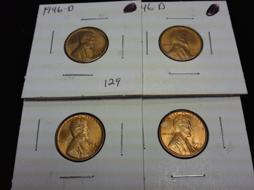 1946-D,46-D,49-D & 50-D LINCOLN CENTS RED UNC