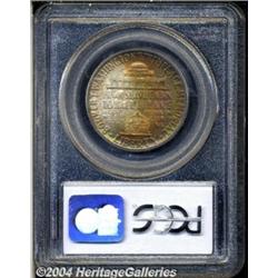 <table><tr><td><table><tr><td>1946-D 50C Booker T. Washington MS66 PCGS. Remarkably clean for the type with even more remarkable multicolored rainbow toning on each side. Population: 132 in 66, 9 finer (3/04).From the Fox Valley Coin Commemoratives. <BR><BR><B>Important notice:</B> Heritage usually auctions material at the rate of 200-250 lots per hour. On some occasions eBay Live bid software or the Internet may not be able to keep up with the pace of the auction. We recommend placing a realistic absentee bid now as insurance to avoid disappointment. Occasionally the auctioneer may eliminate or reject an eBay Live bid, and the auctioneer may also reopen a lot after the close of the eBay live bidding (usually because we missed an audience bid), and may reject your bid even if it shows you as the winning bidder. By bidding via eBay Live, you agree that Heritage may award the lot to another bidder at its sole discretion under the circumstances described above or any other reasonable circumstances. Since eBay bids are not shown to us until we open the lot on the floor, we treat those bids just like floor bids. In most cases the floor responds before the eBay bid is presented to us, due to Internet lag time, so for consistency we have made it a policy that floor bids are always considered first over tie eBay live bids. Also please note that all Heritage lots purchased through eBay Live carry a 20% Buyer's Premium. Please make sure you read the Terms and Conditions before you bid. <BR><BR><B>IMPORTANT ANNOUNCEMENT ABOUT RESERVES:</B> Heritage now divulges all reserves on its web site 7 days before every auction. If you want to know whether the reserve on this lot has been met, and if not, what the reserve amount is, please visit this lot page on the HeritageCoin.com web site, or email: bid@HeritageGalleries.com </span></font></td></tr></table></td></tr></table>