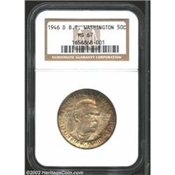 1946-D 50C Booker T. Washington MS67 NGC. Nearly flawless surfaces peek through medium hues of cinnamon-gray toning. Important notice: We expect to be auctioning lots at the rate of 200-250 per hour. Sometimes eBay Premier live bid software cannot keep up with that pace, so we strongly recommend that you place a realistic proxy bid now as insurance to avoid disappointment. Also please note that all Heritage/CAA lots purchased through eBay Premier carry a 20% Buyer's Premium. Please make sure you read the Terms and Conditions.