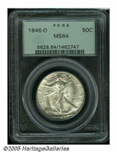 <B>1946-D<50C> MS64 PCGS.</B></I> Well struck and lustrous, this satiny near-Gem displays creamy color and carefully preserved surfaces overall, save for a few minor luster grazes in the right obverse field.