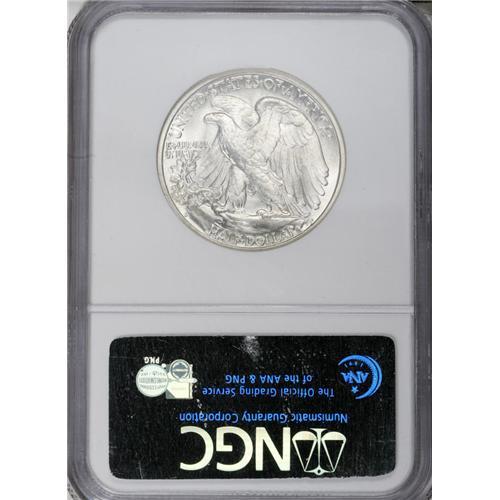 1946-D 50C MS67 NGC. A blush of rose appears over the