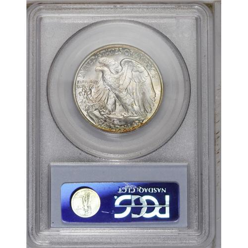 <B>1946-D<50C> MS67 PCGS.</B></I> Highly lustrous with mustard-gold patina at the periphery and patches of reddish-tan near the center. A delightful Superb Gem from the short set, tied for the finest certified at PCGS (8/06).