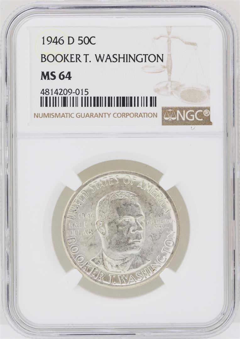 One 1946-D Booker T. Washington Memorial Half Dollar Coin NGC MS64. NGC Certified.