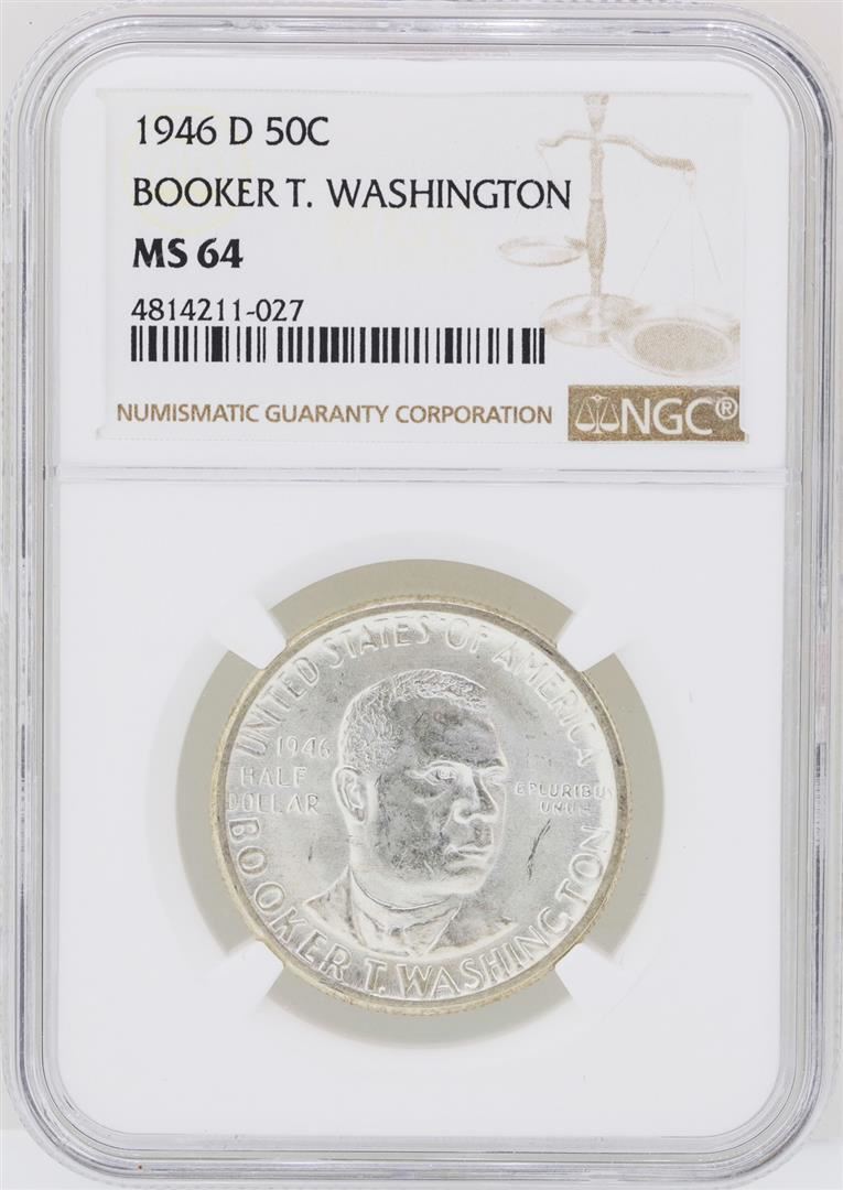 One 1946-D Booker T. Washington Memorial Half Dollar Coin NGC MS64. NGC Certified.