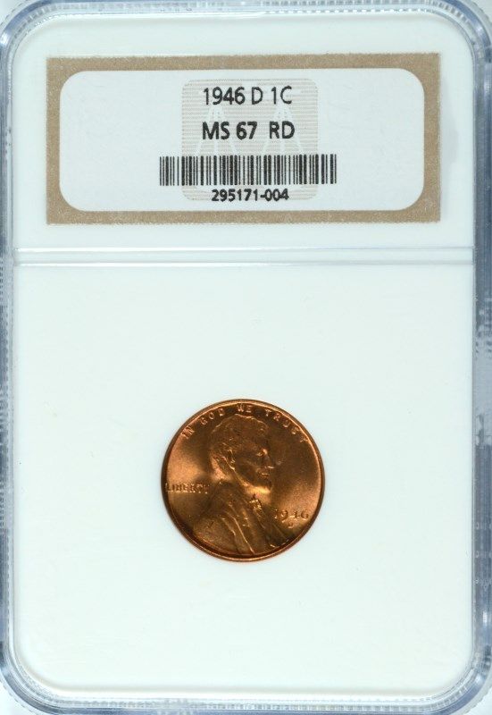 1946-D LINCOLN CENT, NGC MS-67 RED! RARE!!