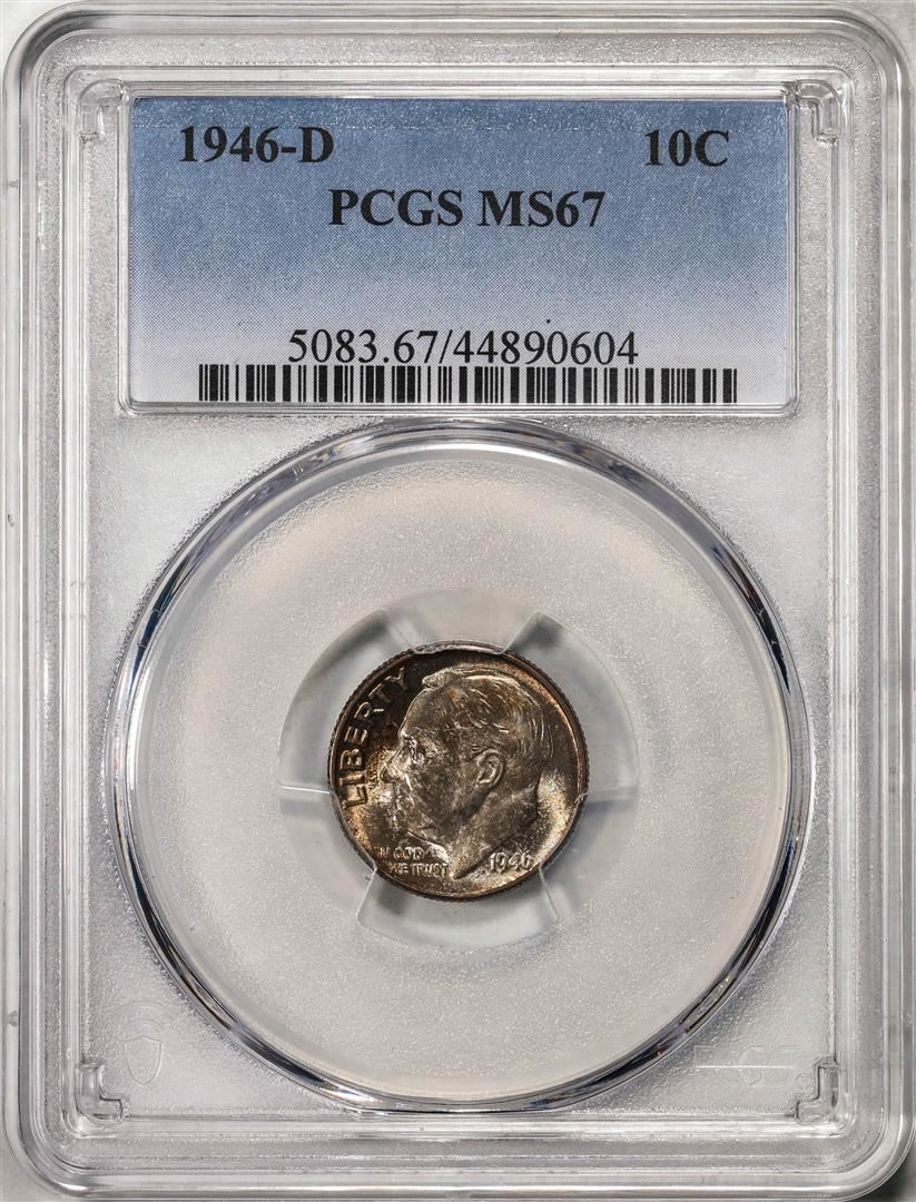 One 1946-D Roosevelt Dime Coin PCGS MS67. PCGS Graded.