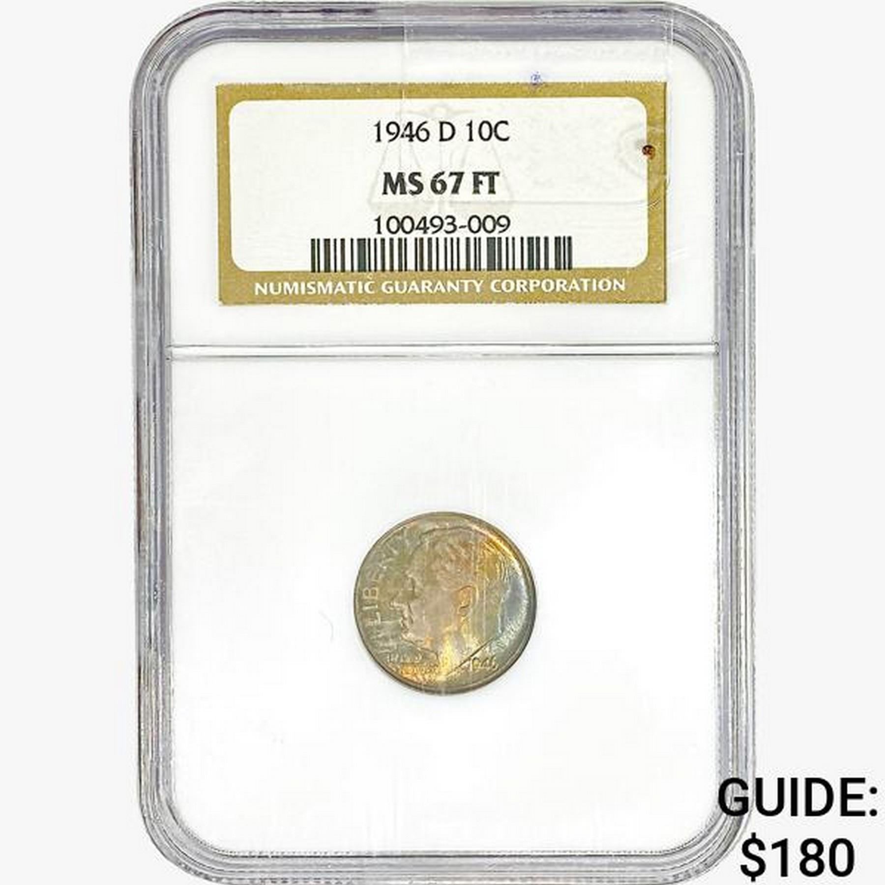 1946-D Roosevelt Dime NGC MS67 FT
