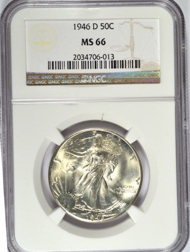 1946-D WALKING LIBERTY HALF DOLLAR, NGC MS-66 SUPERB