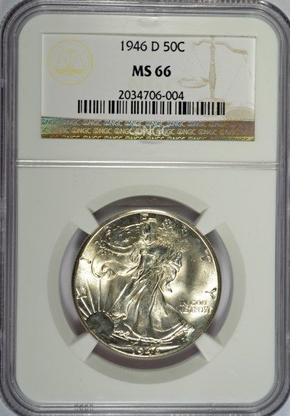 1946-D WALKING LIBERTY HALF DOLLAR, NGC MS-66 SUPERB