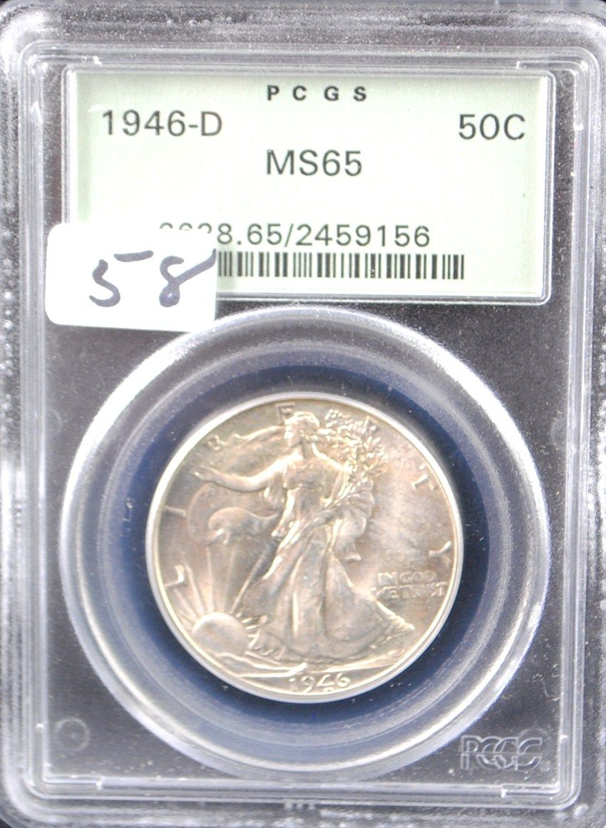 1946-D WALKING LIBERTY HALF DOLLAR - PCGS MS65 (EARLY GREEN LABEL) COIN WORLD LISTS A MS65 @ $175.