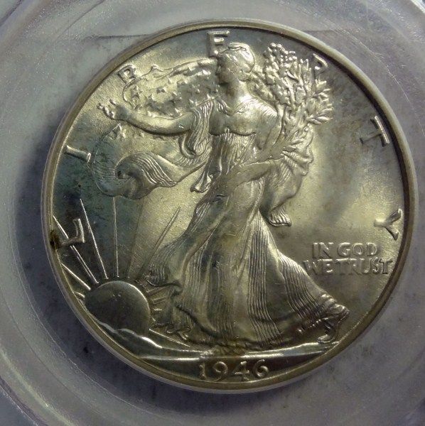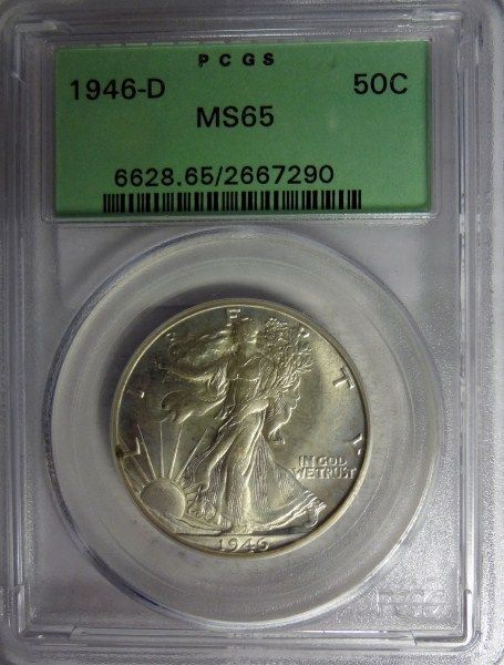1946-D WALKING LIBERTY HALF DOLLAR PCGS MS65, GEM, GREEN LABEL