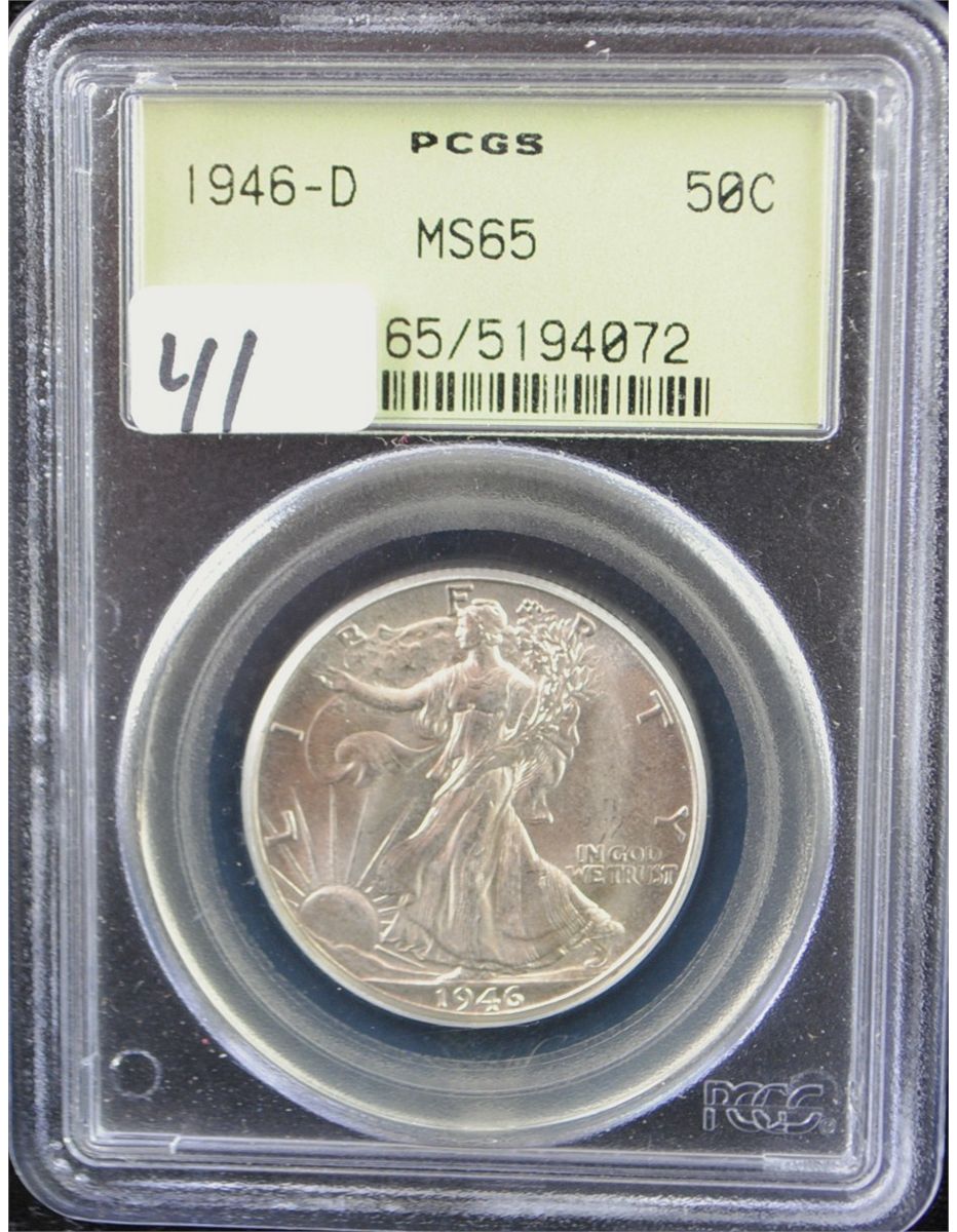 1946-D WALKING LIBERTY HALF DOLLAR - PCGS MS65 (THE OLD GREEN LABEL) COIN WORLD LISTS A MS65 @ $175.00