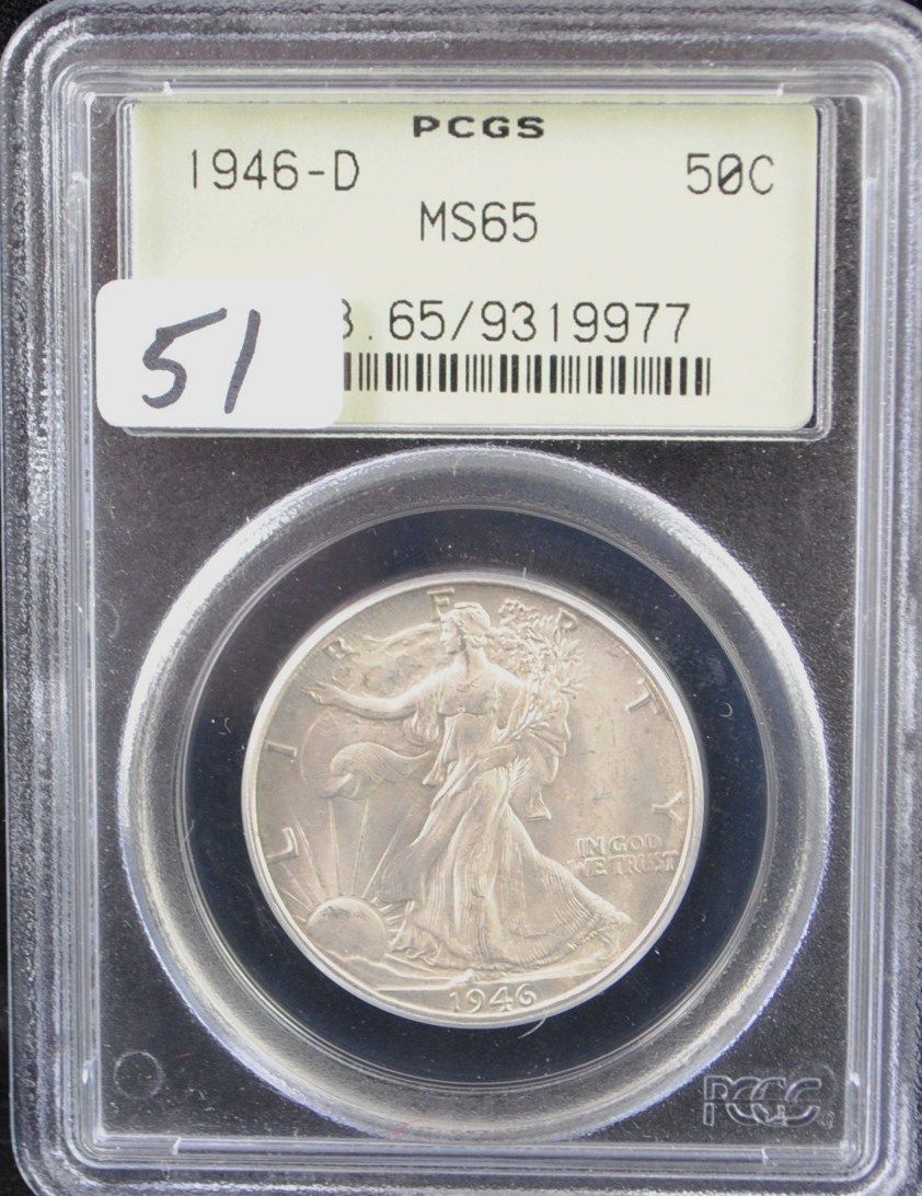 1946-D WALKING LIBERTY HALF DOLLAR - PCGS MS65 (THE OLD GREEN LABEL) - COIN WORLD LISTS A MS65 @ $175.00