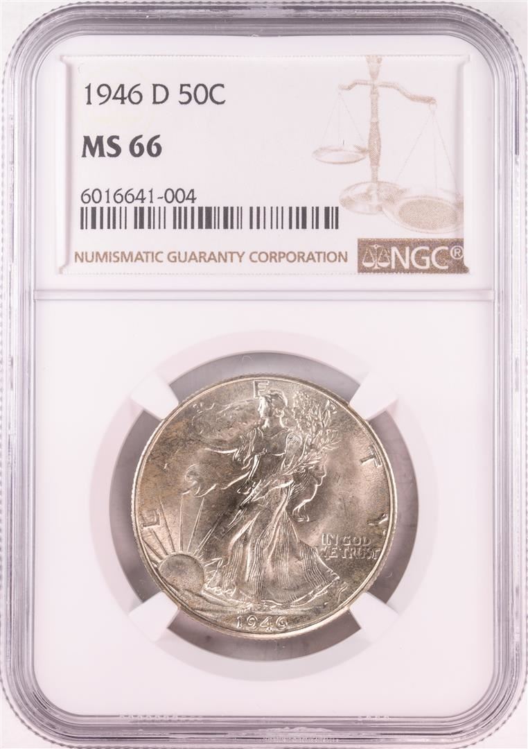 One 1946-D Walking Liberty Half Dollar Coin NGC MS66. NGC Certified.