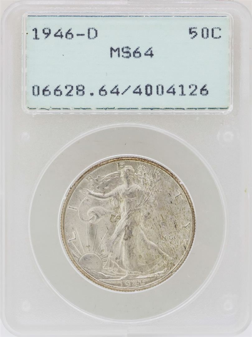 1946-D Walking Liberty Half Dollar Coin PCGS MS64 Green Rattler Holder