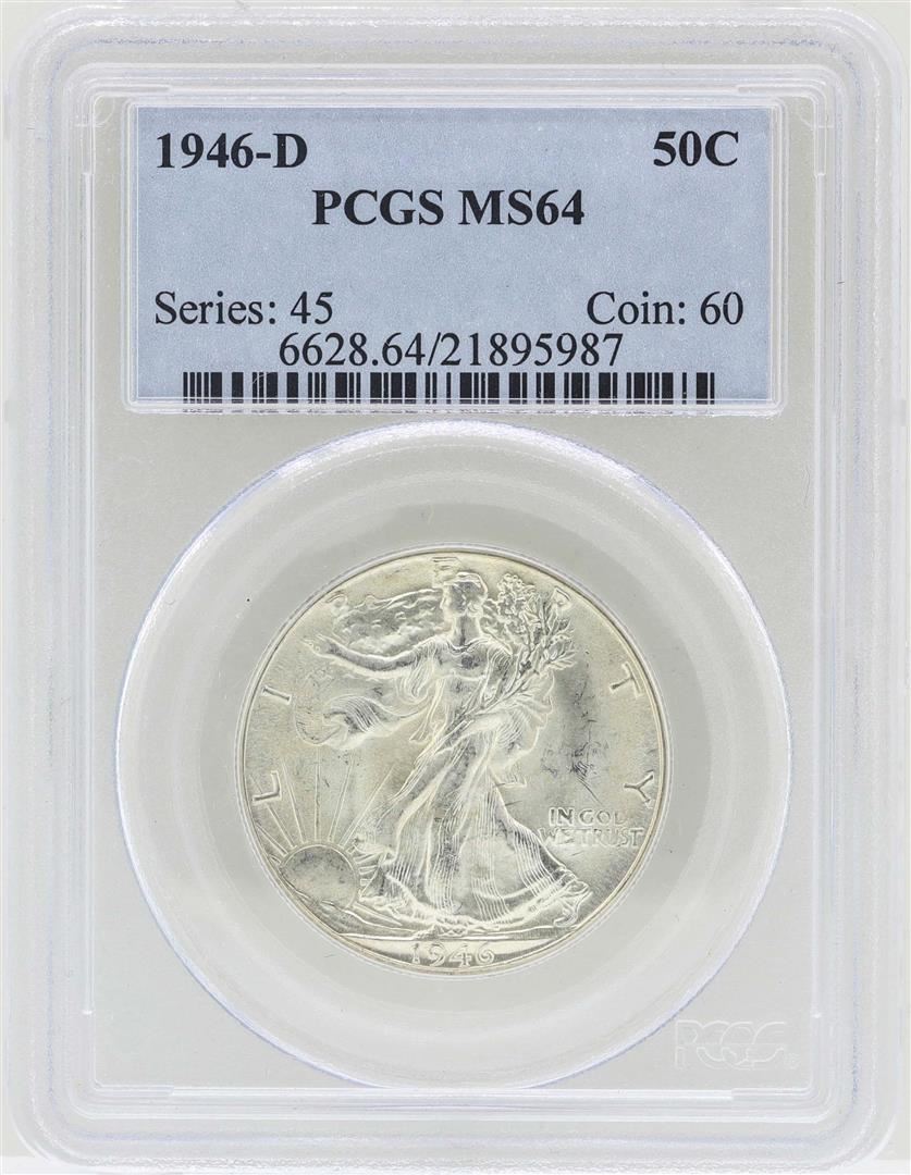 One 1946-D Walking Liberty Half Dollar Coin PCGS MS64. PCGS Graded.
