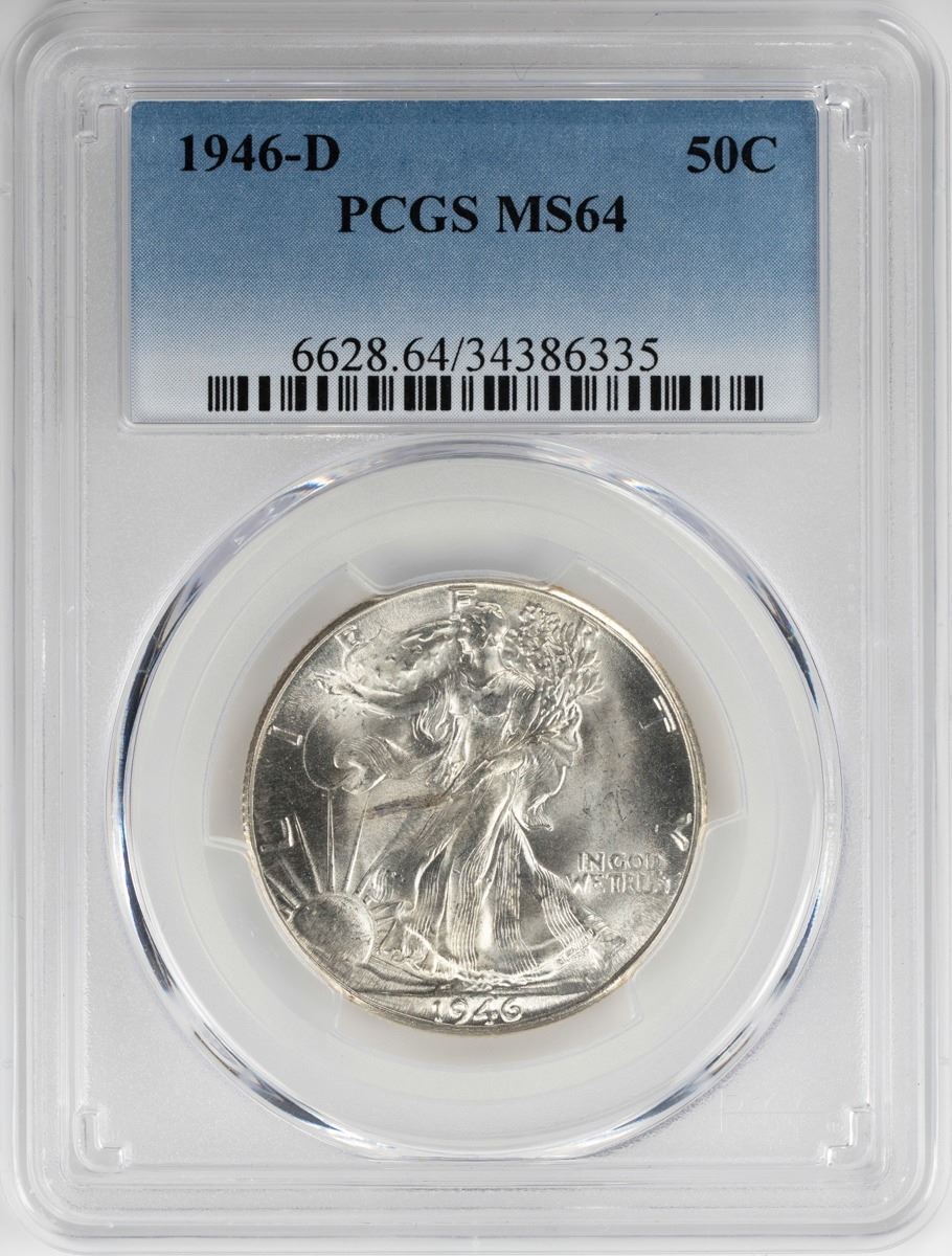 One 1946-D Walking Liberty Half Dollar Coin PCGS MS64.