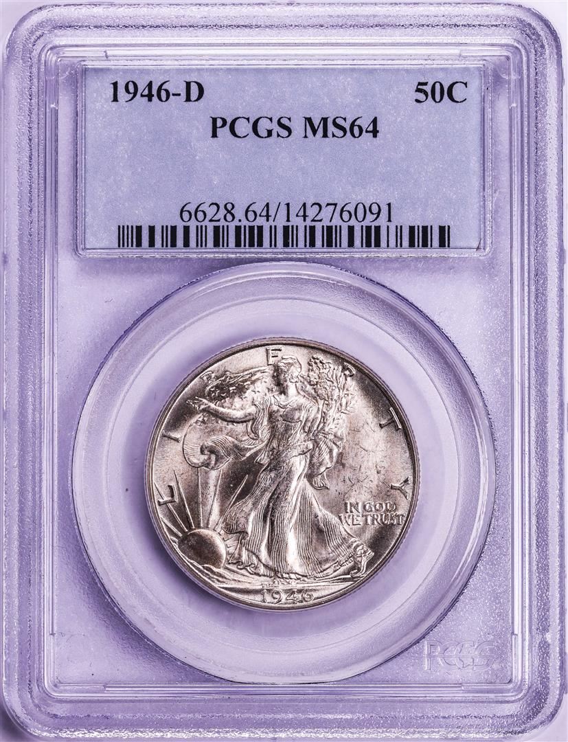 One 1946-D Walking Liberty Half Dollar Coin PCGS MS64. PCGS Graded.