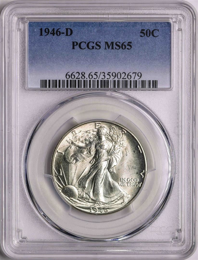 One 1946-D Walking Liberty Half Dollar Coin PCGS MS65. PCGS Graded.