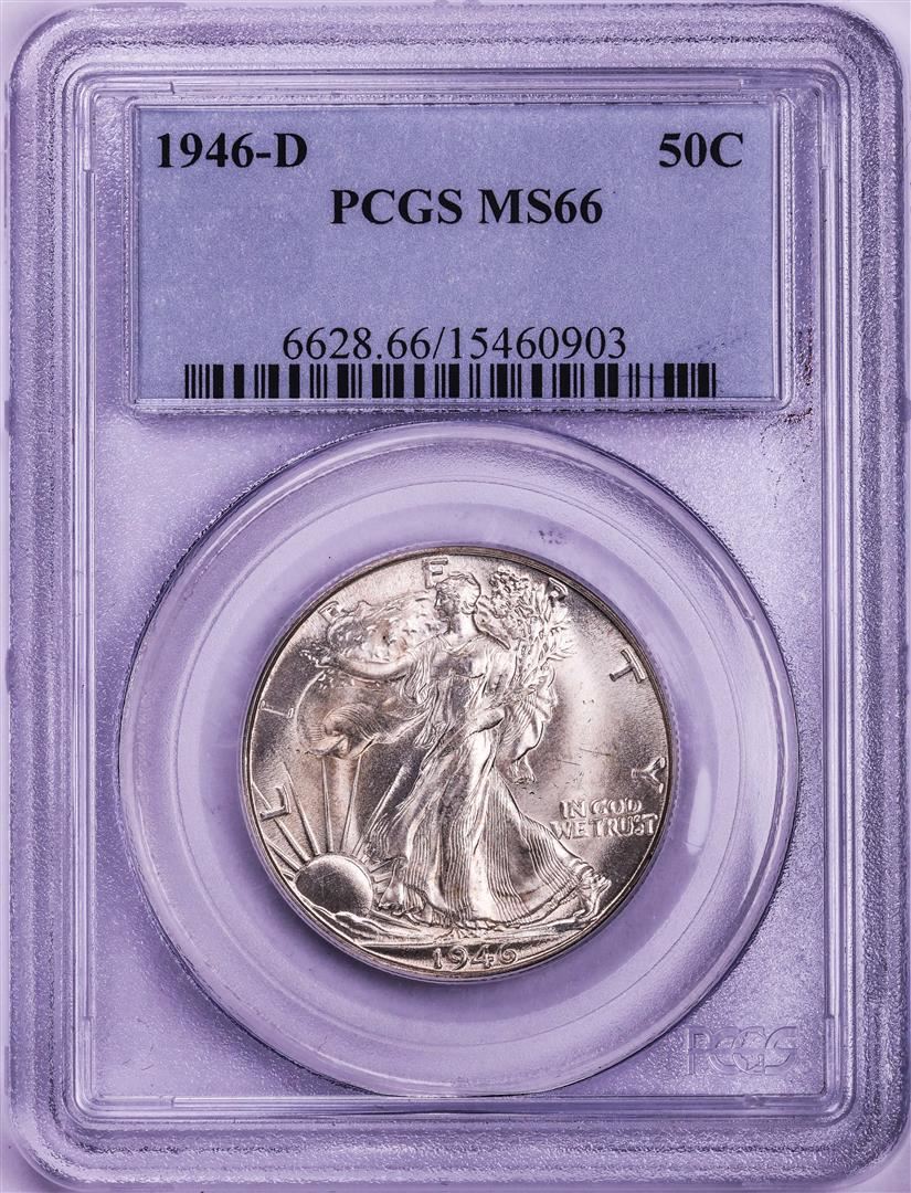 One 1946-D Walking Liberty Half Dollar Coin PCGS MS66. PCGS Graded.