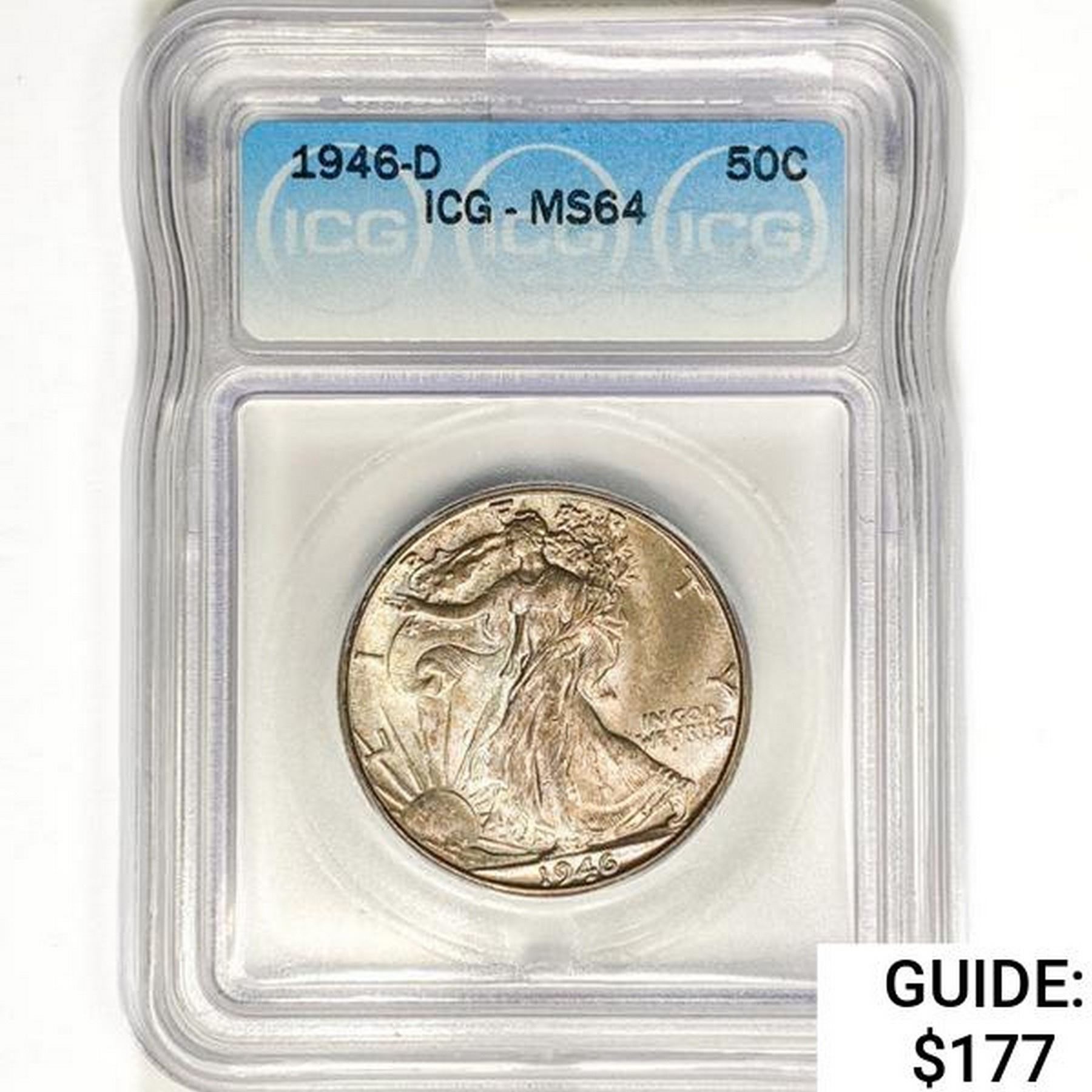 1946-D Walking Liberty Half Dollar ICG MS64