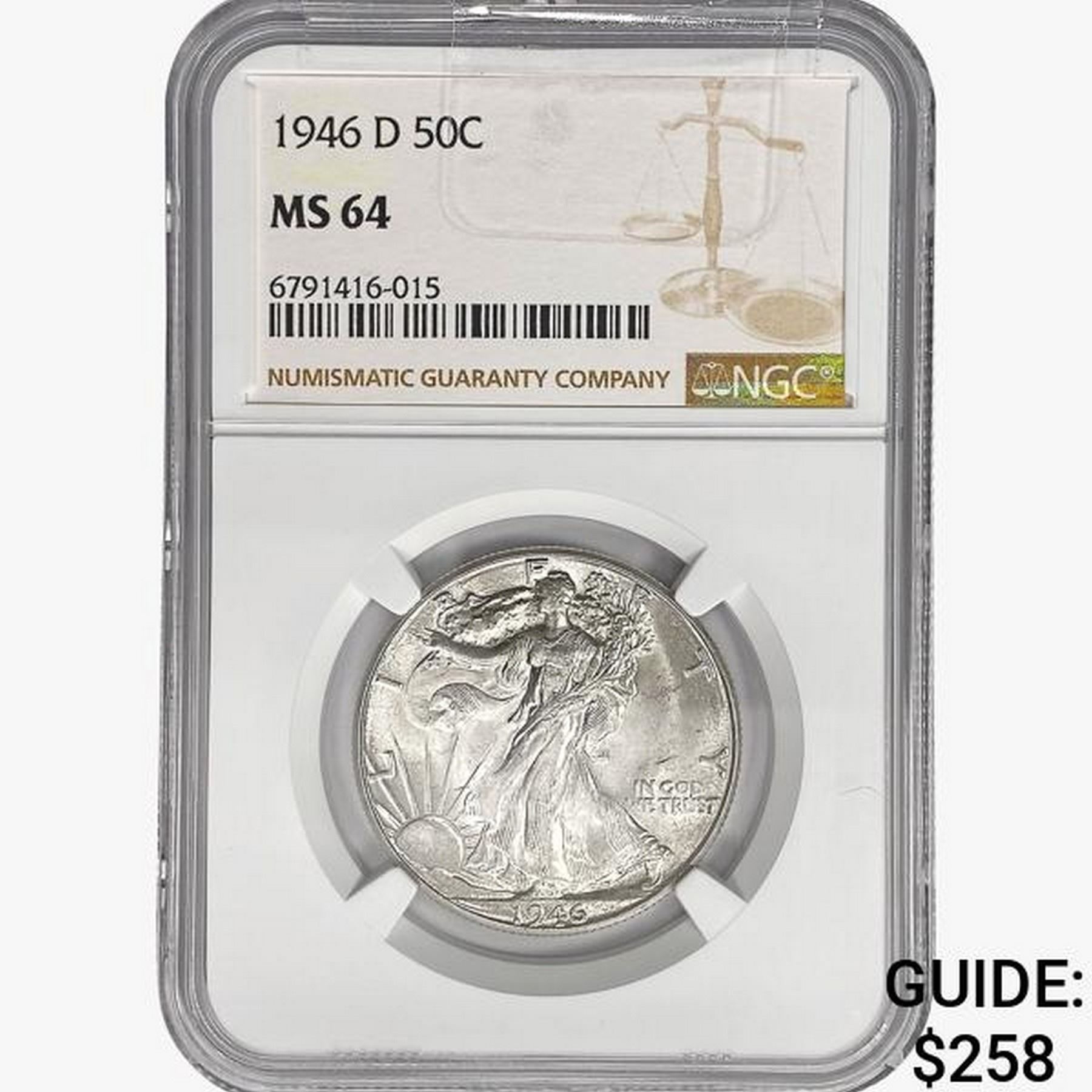 1946-D Walking Liberty Half Dollar NGC MS64 `