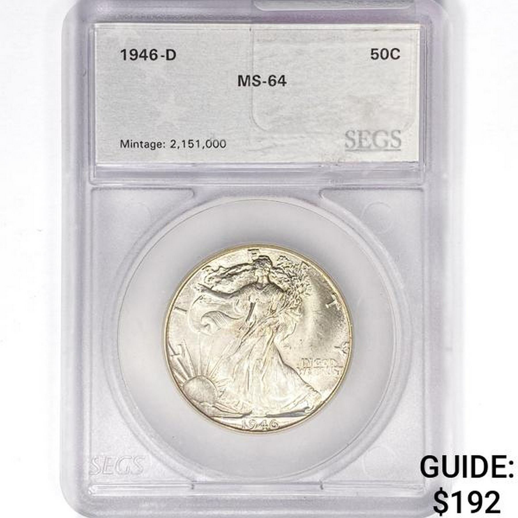 1946-D Walking Liberty Half Dollar SEGS MS64