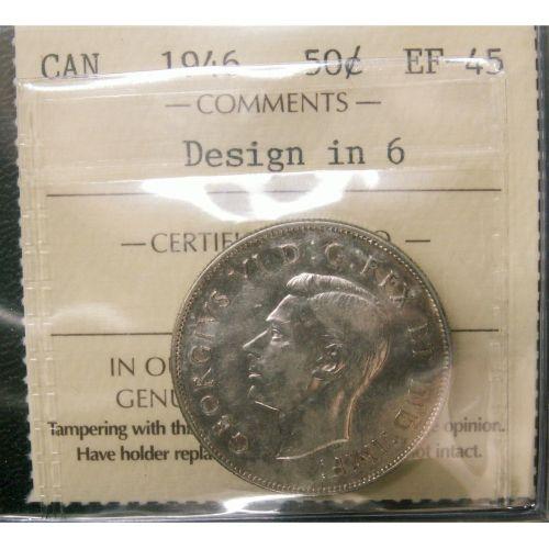 1946 Design in "6" 50¢ ICCS EF-45 Lightly toned with lots of luster. Excellent strike with clean fields.