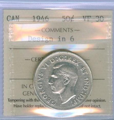 1946 Design in 6 50¢ ICCS VF30, brilliant