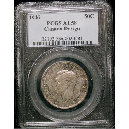 1946 Design in "6" 50¢ PCGS AU-58 Lightly toned with lots of luster. Excellent strike with clean fields.