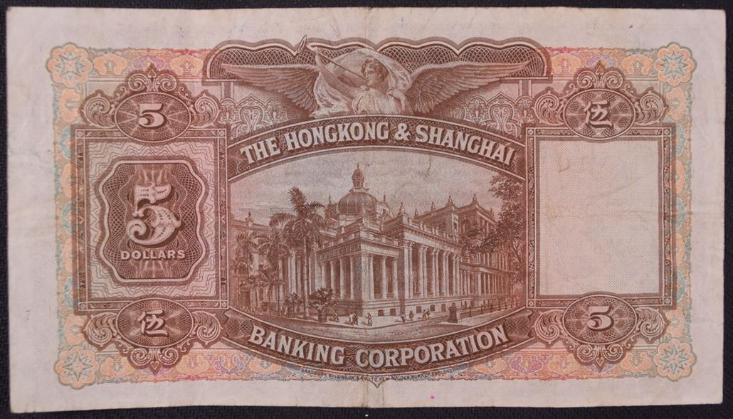 One 1946 Five Dollar Hong Kong and Shanghai Banking Corporation.