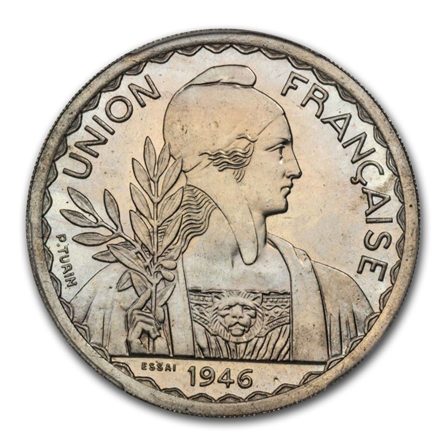 1946 French Indo-China Aluminum 1 Piastre Essai SP-66 PCGS
