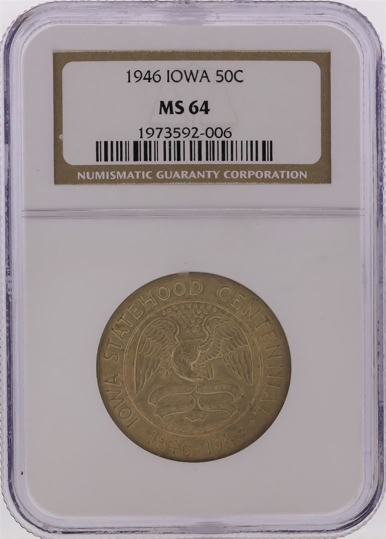 One 1946 Half Dollar Iowa Centennial Commemorative Coin NGC Graded MS64. NGC Certified.