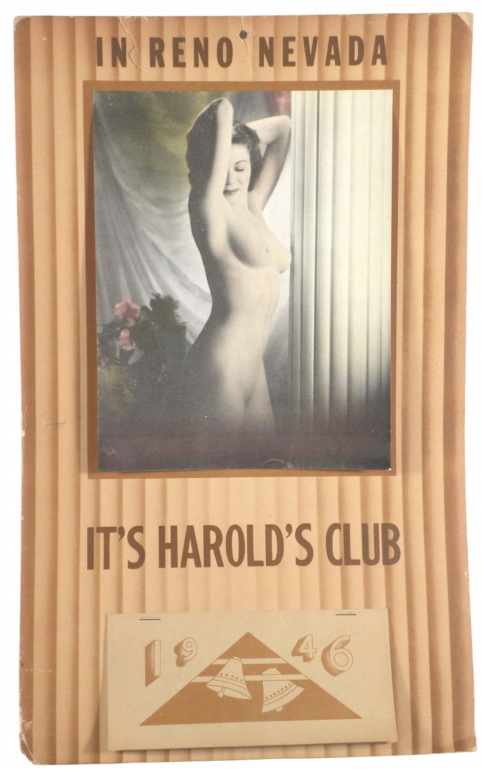 1946 Harold's Club Calendar, Reno, Nevada. Pad complete with dust cover. Tear at 11:00 and dog eared otherwise very good condition. 10 1/2 X 17 inches.