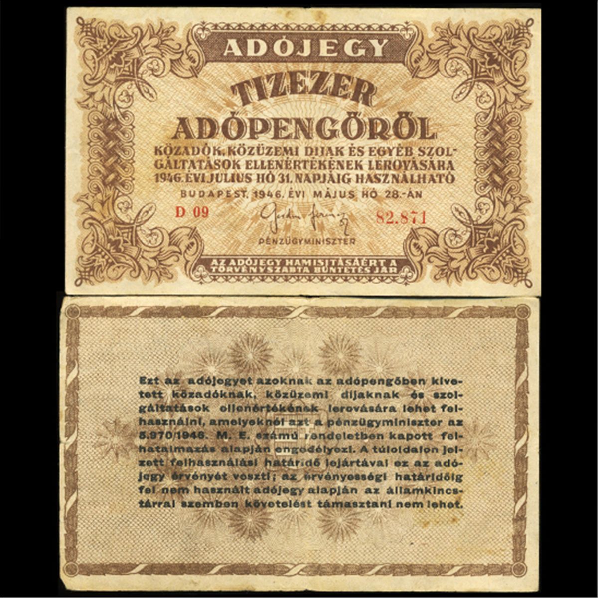 1946 Hungary 10000 Pengo Tax Note Hi Grade Scarce (CUR-05764)